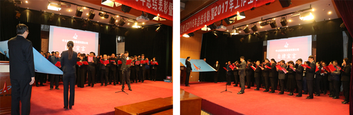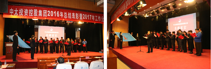 根據(jù)會(huì)議安排,中太建設(shè)集團(tuán)副董事長(zhǎng)燕振義、總裁吳建國(guó)作為領(lǐng)誓人,分別引領(lǐng)中太投資控股集團(tuán)下屬單位董事、監(jiān)事及中層以上領(lǐng)導(dǎo)干部進(jìn)行自律宣誓,宣誓人分別在誓詞上簽字,并承諾2017年將恪盡職守、奮發(fā)向上,全身心投入到企業(yè)發(fā)展上來(lái),做合格的企業(yè)引領(lǐng)人和決策者。