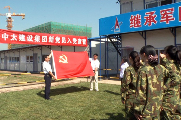 7月3日上午9點,中太建設集團黨委在安瑞科項目工地舉行新黨員入黨宣誓儀式。在鮮紅的中國共產黨黨旗面前, 16名新黨員整齊排列成行,舉起右手,握拳過肩,莊嚴宣誓,表達了為共產主義事業(yè)奮斗終身的決心。集團黨委副書記鐘崇鶴參加宣誓儀式并講話。他代表集團黨委向全體新黨員表示祝賀,并提出了明確的要求和希望。他希望新黨員同志們不要辜負黨組織的期望,牢記入黨誓言,牢記全心全意為人民服務的宗旨,發(fā)揚黨的優(yōu)良傳統(tǒng)和作風,在“創(chuàng)先爭優(yōu)”活動中,在各自的工作崗位上,熱愛本職、學習本領,努力工作,發(fā)揮好黨員的先鋒模范帶頭作用,為黨的事業(yè)和中太的發(fā)展做出自己新的、更大的貢獻,以更加優(yōu)異的成績,喜迎黨的十八大的勝利召開,無愧于共產黨員的光榮稱號!