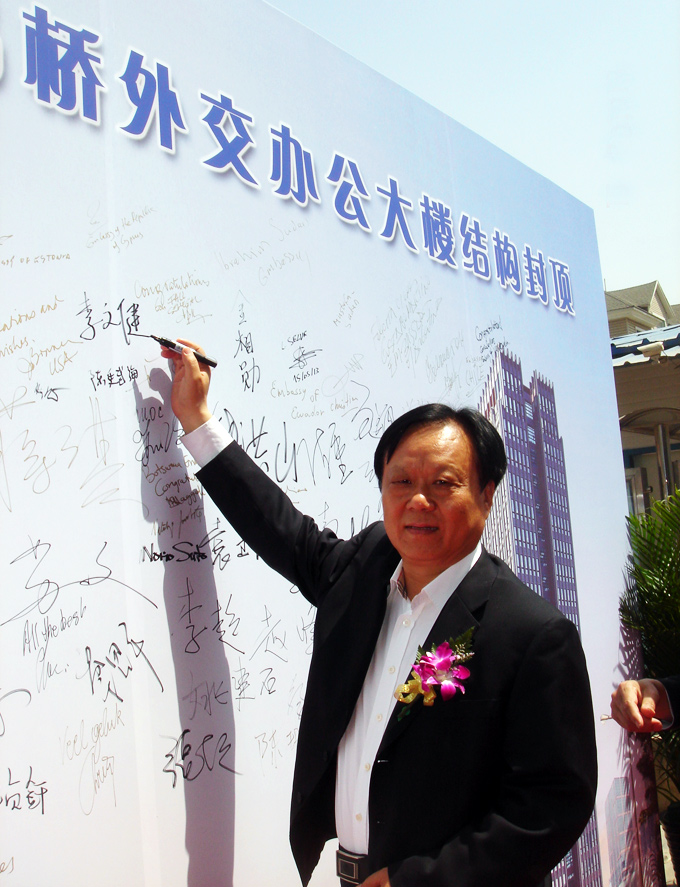建設部、外交部、北京市建委、北京外交人員服務局等領導、阿根廷駐華大使、集團董事局主席李文健啟動結構封頂儀式