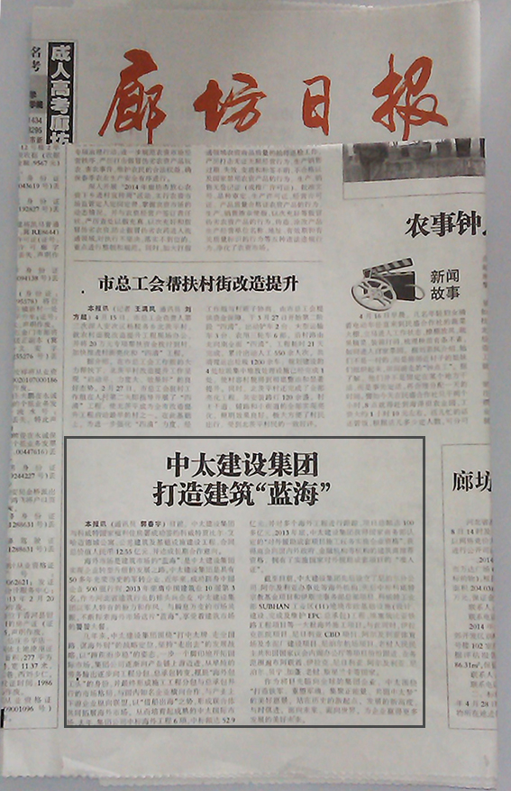 廊坊日報報道了中太建設集團打造建筑“藍!