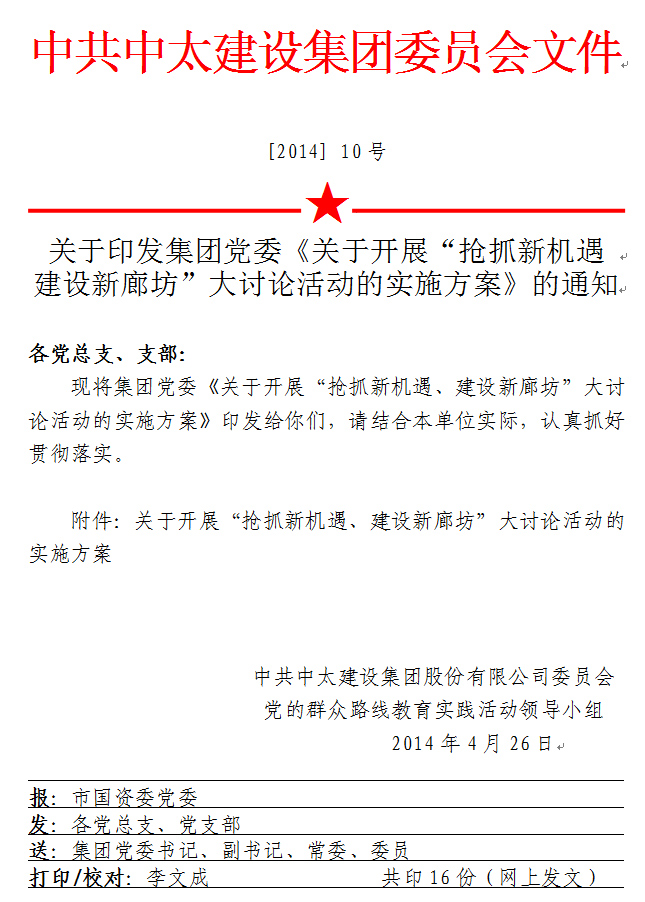 中太建設集團股份有限公司黨委關于開展“搶抓新機遇、建設新廊坊” 大討論活動的實施方案