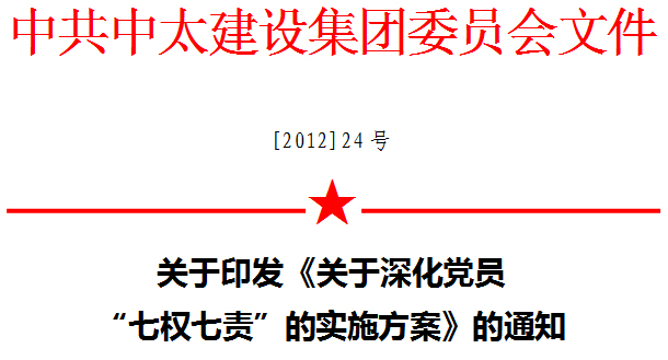 (一)建立領導機構,分類指導。各級黨組織要成立深化黨員“七權七責”領導機構和工作機構,負責對本單位黨員“七權七責”的組織實施和具體指導。集團黨委成立“深化黨員‘七權七責’工作領導小組”: